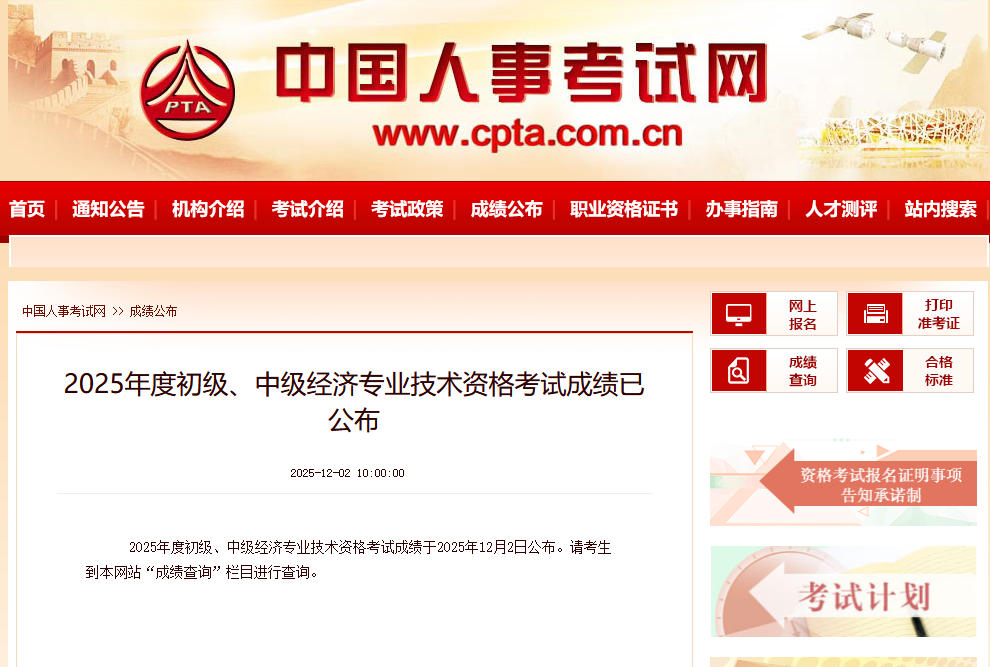 2025年江西初中级经济师考试成绩查询入口已于12月2日开通!想知道自己的成绩如何?赶快查询吧!祝大家都能取得满意的好成绩!