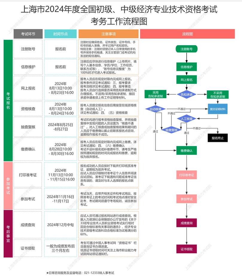 根据《人力资源社会保障部办公厅关于2024年度专业技术人员职业资格考试工作计划及有关事项的通知》(人社厅发〔2024〕1号)安排,结合本市实际,现将上海市2024年度全国初级、中级经济专业技术资格考试有关事宜通知如下: